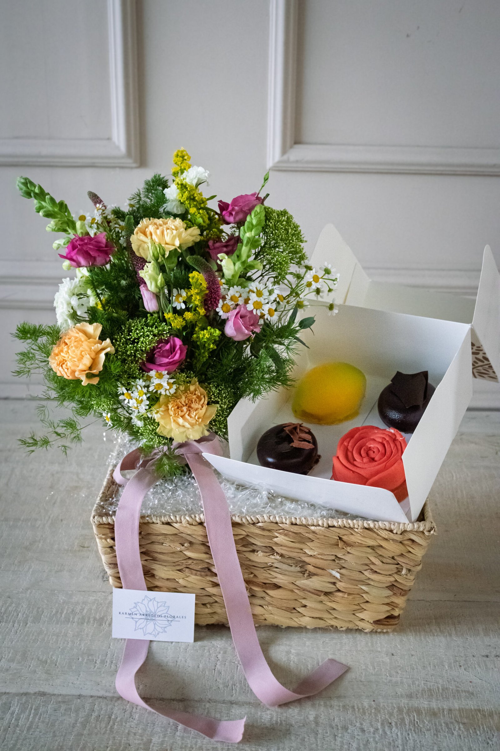 CESTA REGALO DE FLOR Y PASTELES BY BOTANICC
