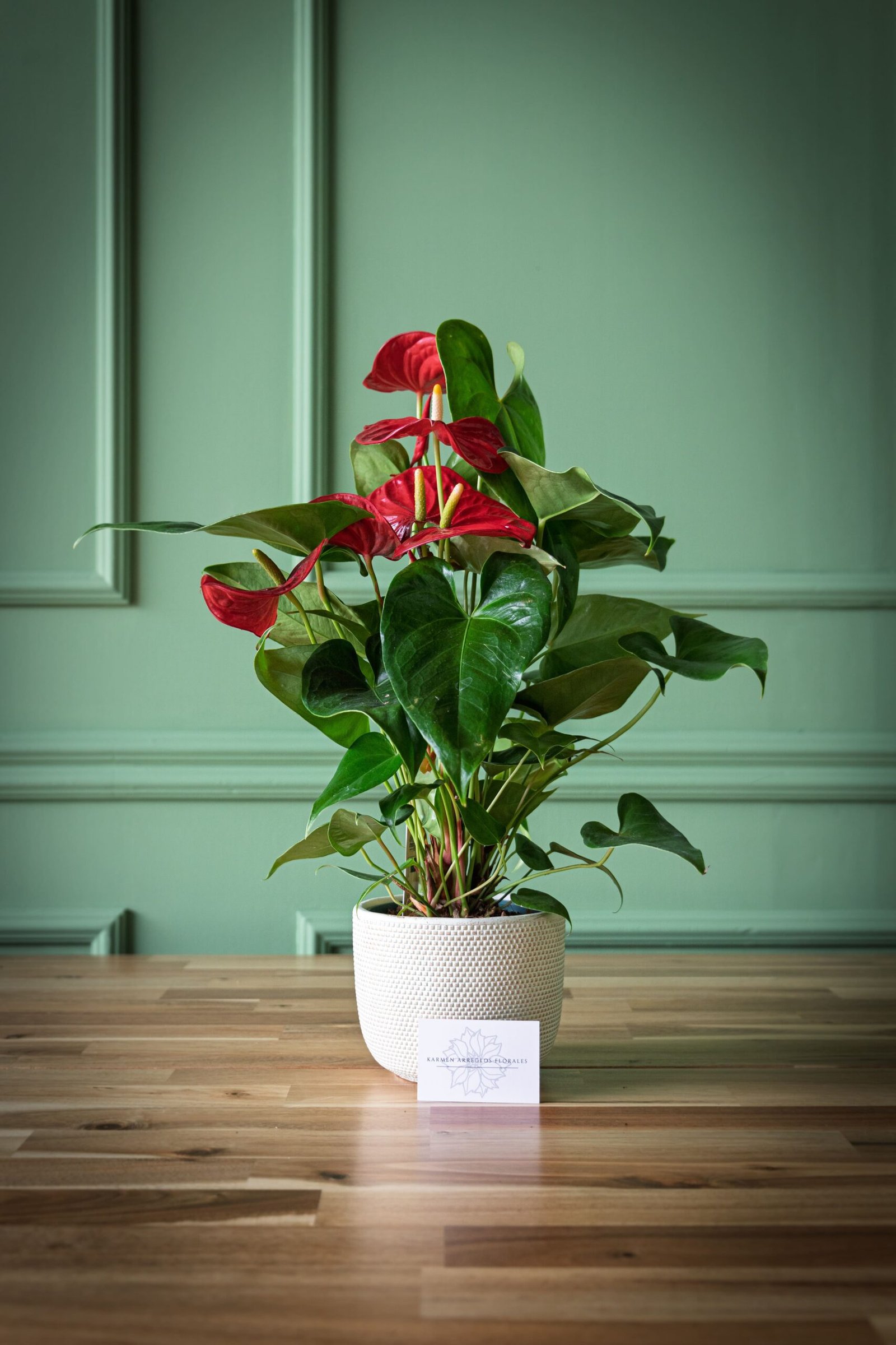 Incluye: Spathiphyllum (espatifilo), anthurium (anturio), rosal mini y hiedra.
