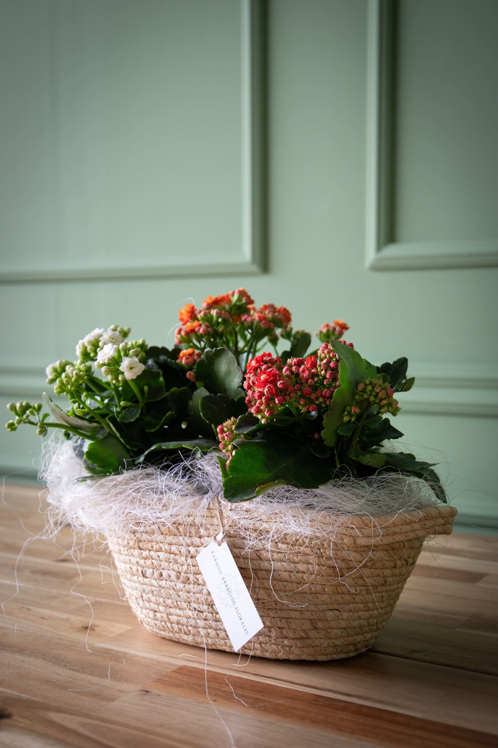 Cesta de plantas naturales con una cuidada selección que combina frescura, color y naturalidad. Perfecta para regalar o aportar un toque vivo y acogedor al hogar.